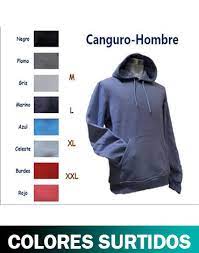PolerĂ³n Canguro con capucha, 100% algodĂ³n, diferentes colores, tallas S, M, L, XL, XXL